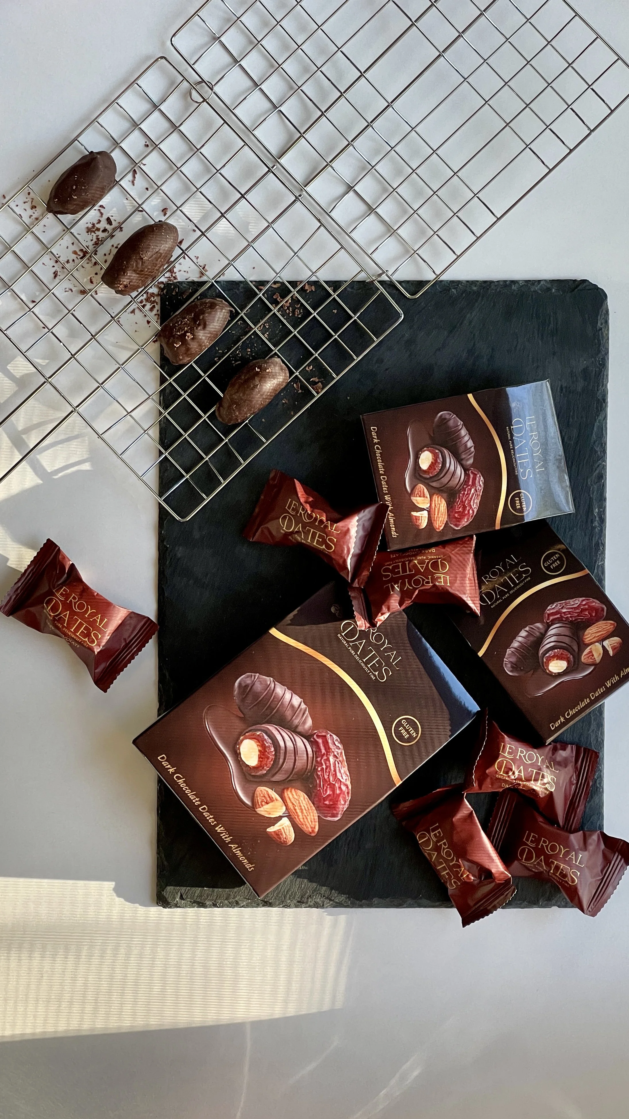 Our Two Bite Chocolate Dates are crafted without added sugar, these treats offer a guilt-free, gluten-free, and vegetarian delight that combines rich flavours and wholesome ingredients. Our dates are pitted, filled with almonds, and covered in Belgian chocolate.